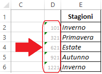 Esempio 5 - Codifica valori cronologici mediante numeri - Metodo utilizzato da EXCEL
