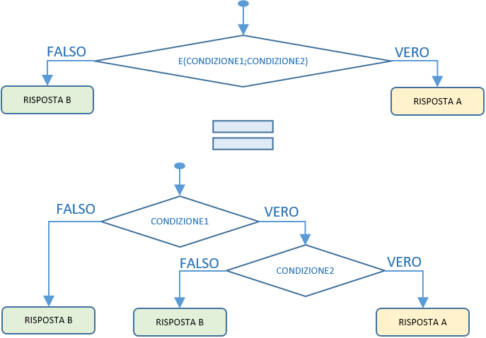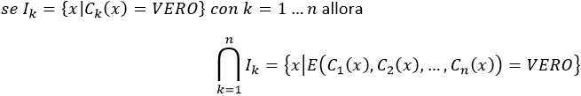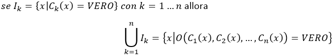 la condizione NON(E(A1;A2;A3)) è equivalente a O(NON(A1);NON(A2);NON(A3))