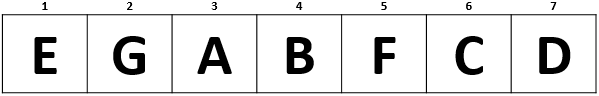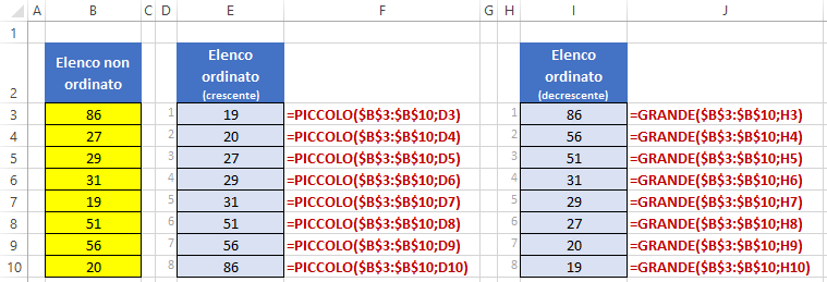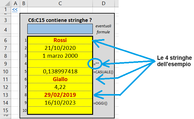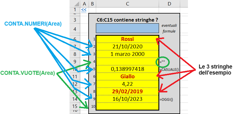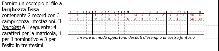 Iniziamo con il numerare progressivamente 7 caselle vuote. Un file dati compatibile può essere ottenuto inserendo in sequenza le prime 7 lettere dell'alfabeto A, ... , G nelle posizioni indicate dall'indice