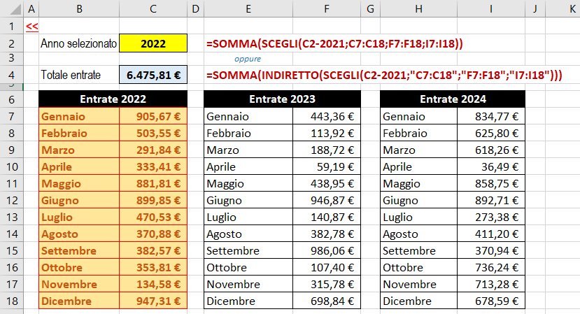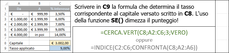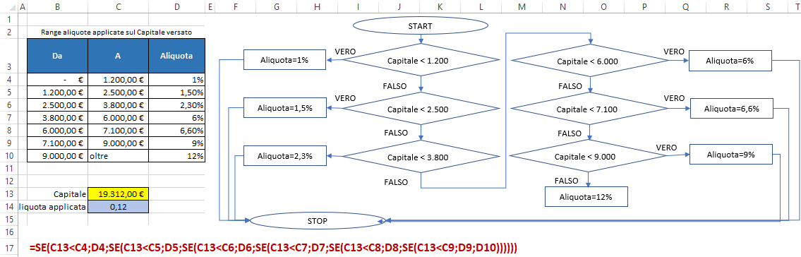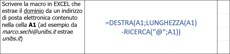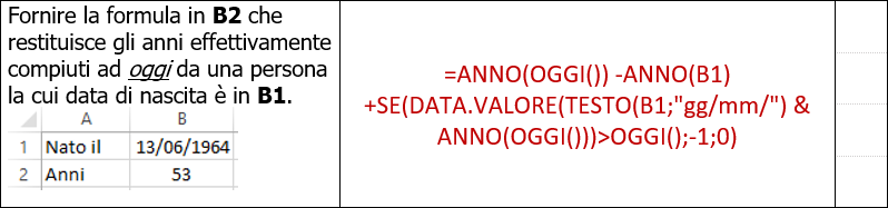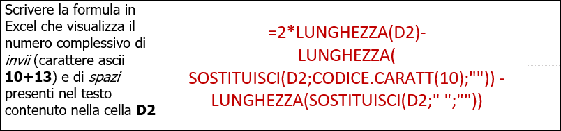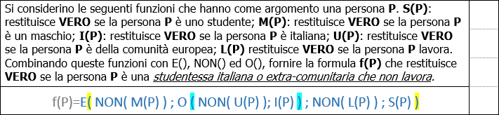 Aggregando tutte le formule viste otteniamo la soluzione richiesta: