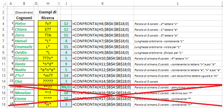 NOTE RELATIVE ALLA SEZIONE EXCEL TRATTATE DURANTE LE LEZIONI - CORSO A-L