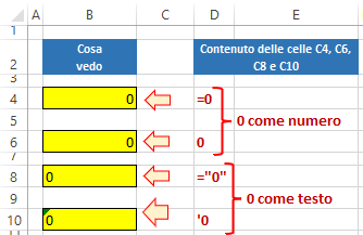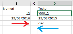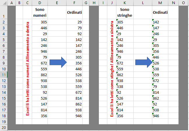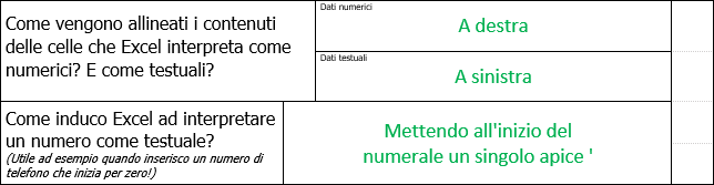 Excel gestisce solo due tipologie di dato: numeri e testi. I dati che Excel riconosce come numerici sono allineati a destra mentre quelli testuali a sinistra!
