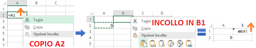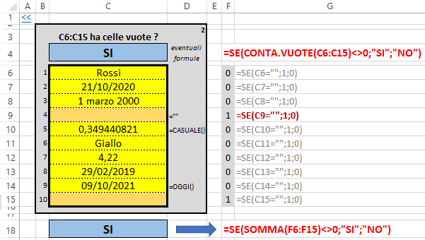 che contiene dei dati - se le celle a lato sono tutte vuote si sposta