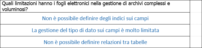 Esempi presi dai test d'esame relativi alla sezione "X5 - BASE DATI - Archivi e Spreadsheet":