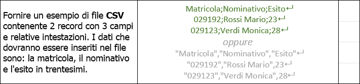 Esempi presi dai test d'esame relativi alla sezione "X5 - BASE DATI - Importazioni":