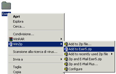 3) Con il tasto destro sopra la cartellina richiamare la voce di menu "Add to Eser?.zip" come in figura
